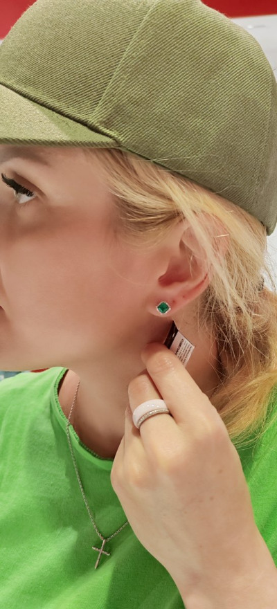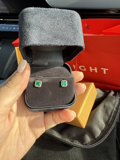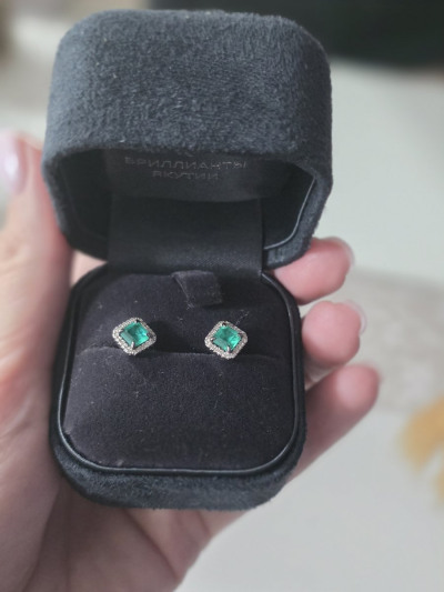 Серьги очень понравились, красивые🔥, классный насыщенный цвет у выращенного изумруда прямо как и хотела , были серьги с натуральным камнем,цвет вообще не яркий, больше травянистый какой-то. Размер что надо, на мою маленькую мочку даже крупновато смотрятся, бриллианты крошка, практически не заметны, очень длинный штифт, пришлось отдавать в мастерскую, чтобы добавили резьбу, так как серьги сваливались вперëд. А так в целом всё хорошо, спасибо Любимому 🩷 и Санлайт за эту красоту !