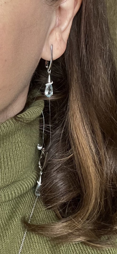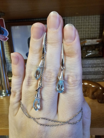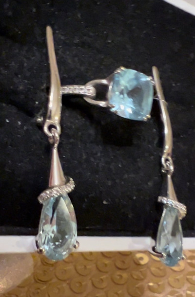 Сказочно прекрасные сережки- как голубые, сияющие ручейки- дизайн чудесный! Сделаны качественно, смотрятся изумительно! Рекомендую к покупке в комплекте с кулоном)