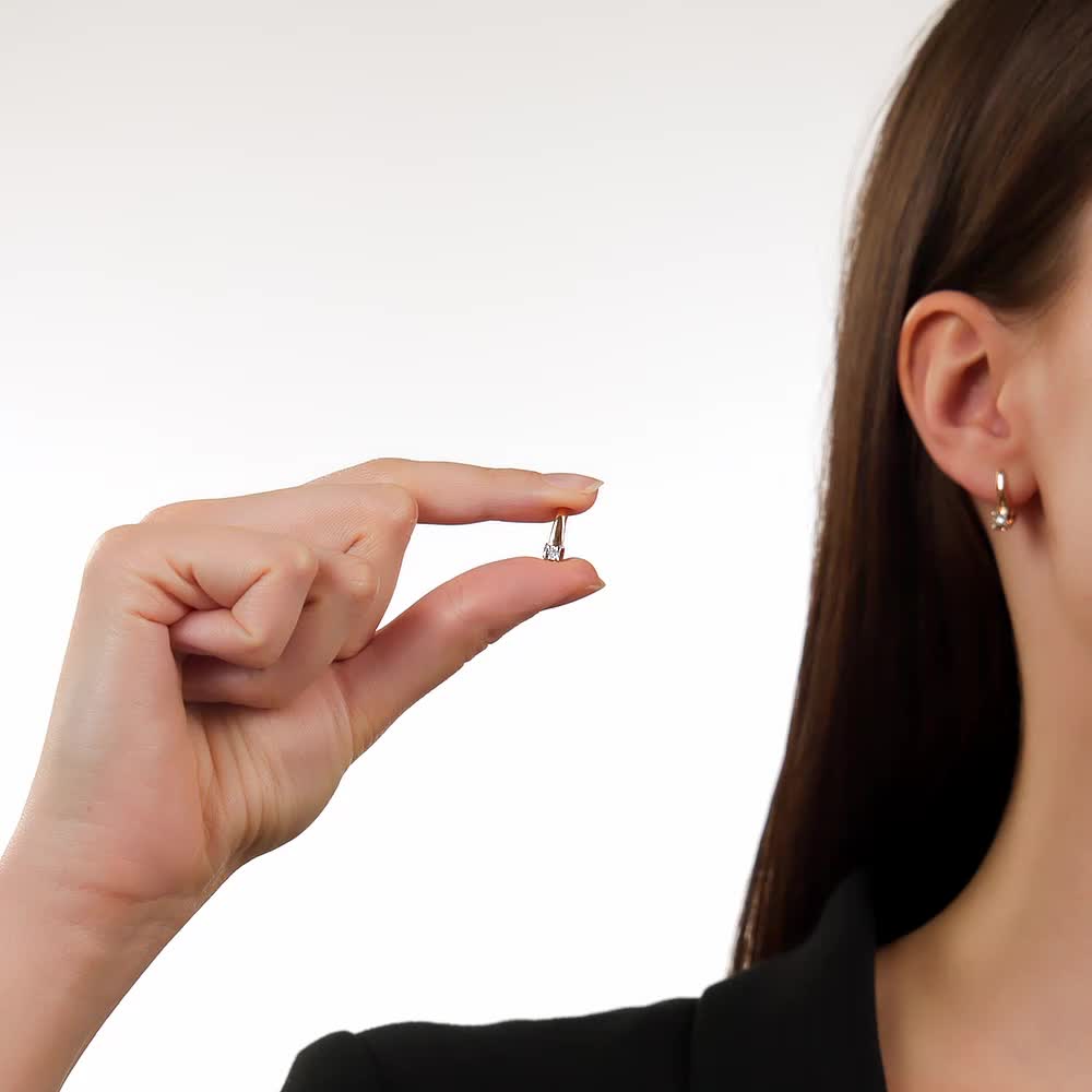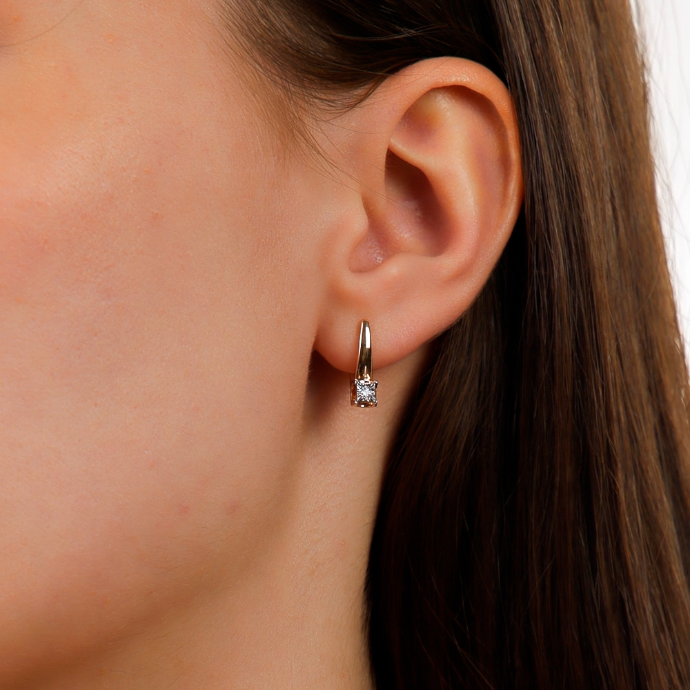 Серьги с 2 бриллиантами природными, 0.04 карат, огранка круг 57 граней, цвет 3, чистота 6, тип огранки А;