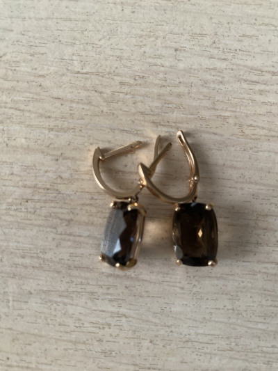 В редких случаях характеристики украшения или упаковка могут иметь отличия от представленных на фото или в описании.Серьги с 2 кварцами дымчатыми природными, 12.06 карат;