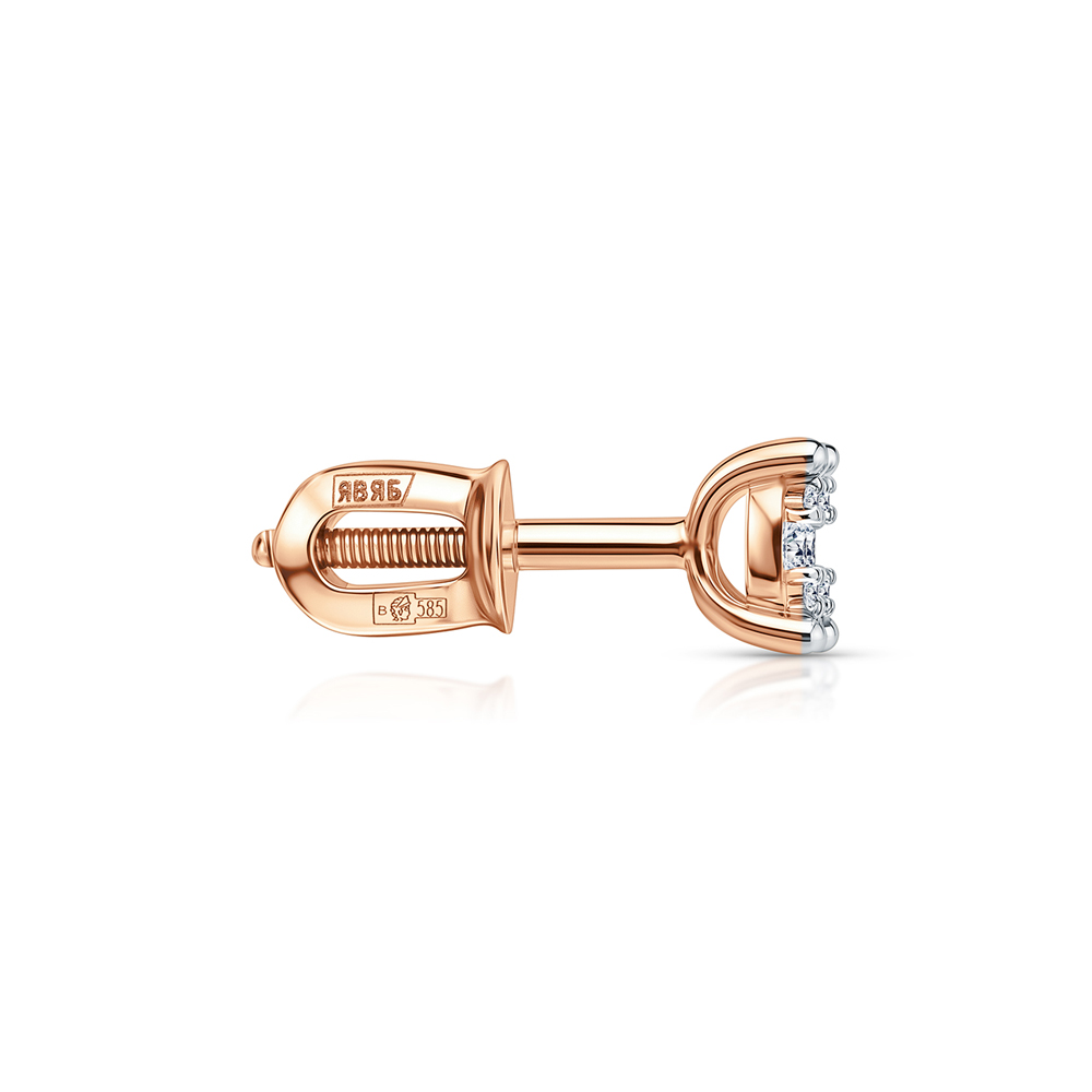 Серьги с 2 бриллиантами природными, 0.08 карат, огранка круг 57 граней, цвет 3, чистота 5, тип огранки А;
