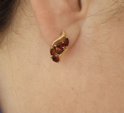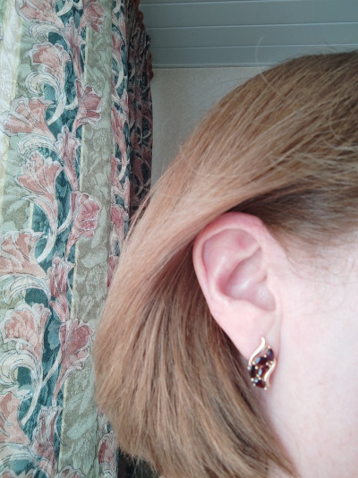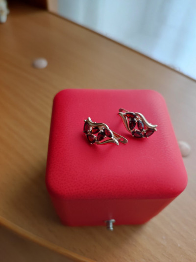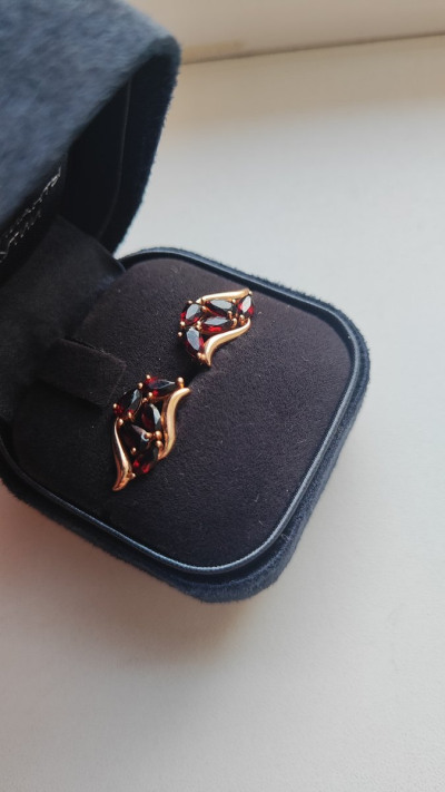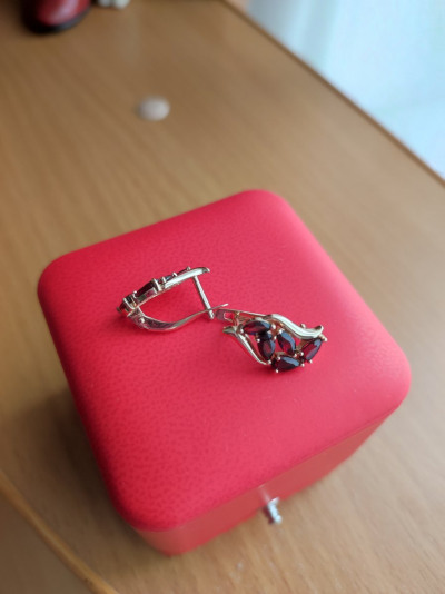 Очень понравились эти серьги с гранатами. Подарок на гранатовую свадьбу. Они достаточно крупные. Хорошо подходят тем, у кого крупная мочка.