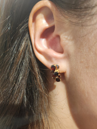 Золотые серьги с гранатами природными