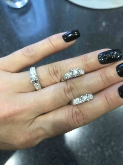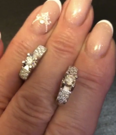 Спасибо мужу- порадовал! На каждый день достойные серьги, да еще и такое же кольцо. Камни, почти по четверти карата, да еще россыпь, чистота хорошая, смотрятся достойно!