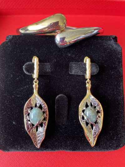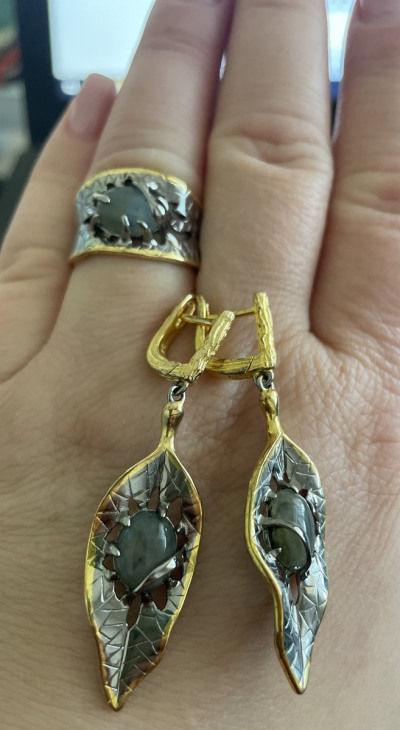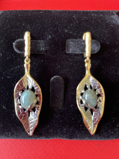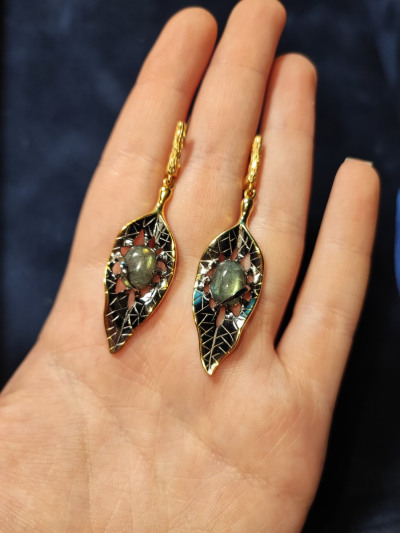 Пока ждала скидку - остались последние. Красивого перелива в камне почти нет. Но они мне идут, поэтому я довольна. А ещё они идеально подошли мне под браслет, к которому я никак не могла подобрать серьги.