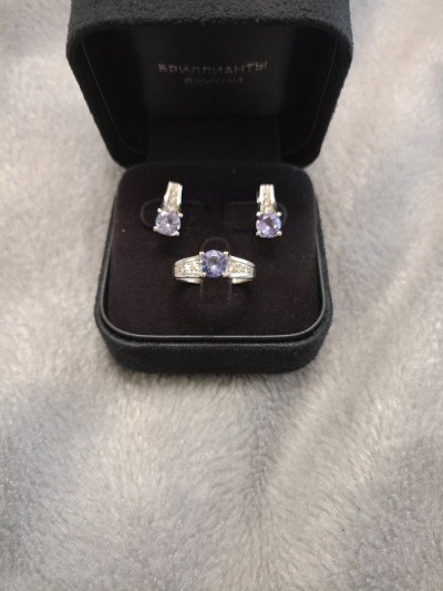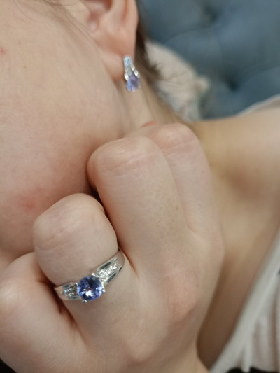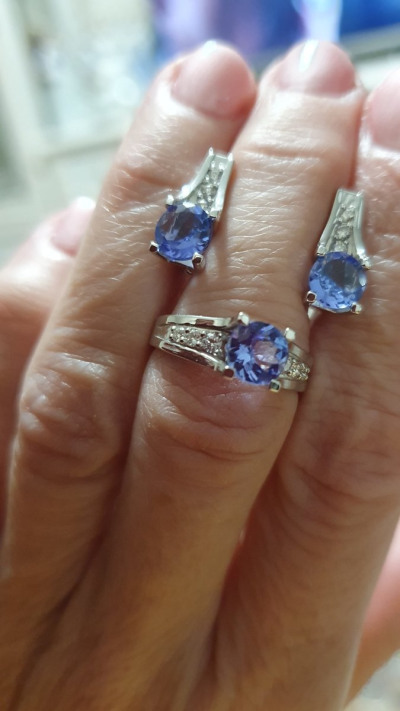 Взяла комплектом серьги и кольцо. Сказать просто красиво это мало. Камни горят всеми гранями. Танзанит самый красивый камень в ювелирных изделиях. Комплект можно носить и в театр и в спортзал, смотреться будет и там, и там. Фото конечно не особо получилось, делала ходу, сори.