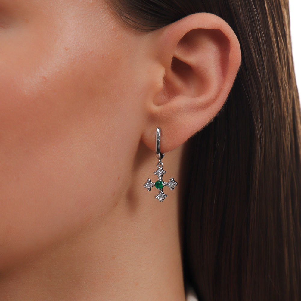 Серебряные серьги с фианитами и агатами природными