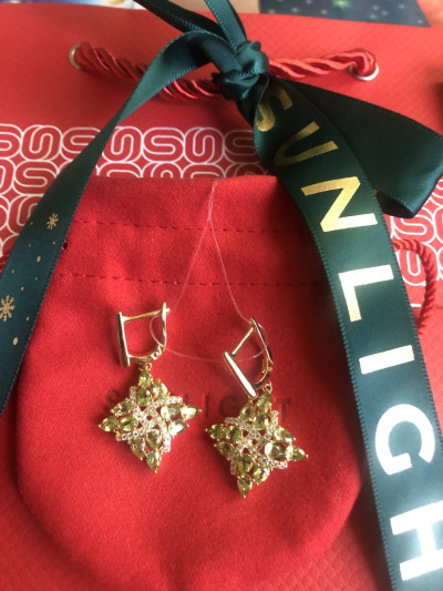 Сначала купила кольцо, за полгода носки позолота не облупилась, камушки все на месте , за волосы и предметы не цепляется. Сейчас купила серьги на НГ- красота: хризолиты и фианиты блестят и переливаются , создают праздничное настроение, при солнечном свете весной будут переливаться не хуже.