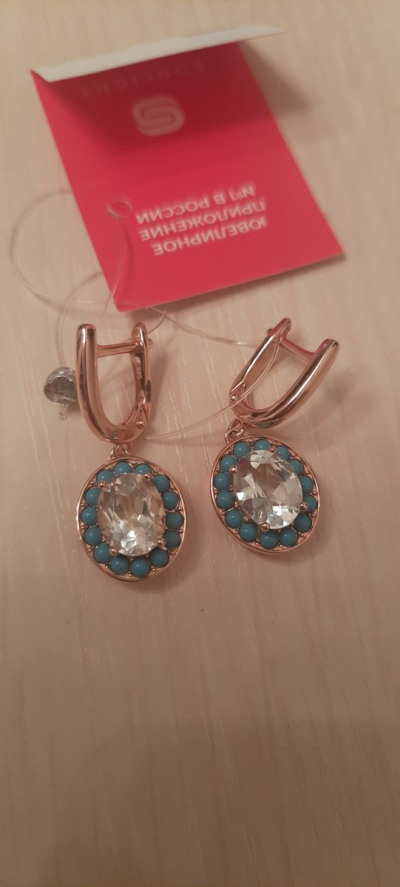 Серьги смотрятся дороже благодаря оригинальному дизайну и позолоте. Сверкающие капельки топаза оттеняются бирюзой. Подойдут как молодым девушкам, так и возрастным дамам. Рекомендую!