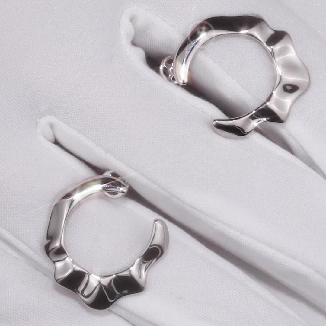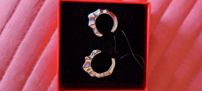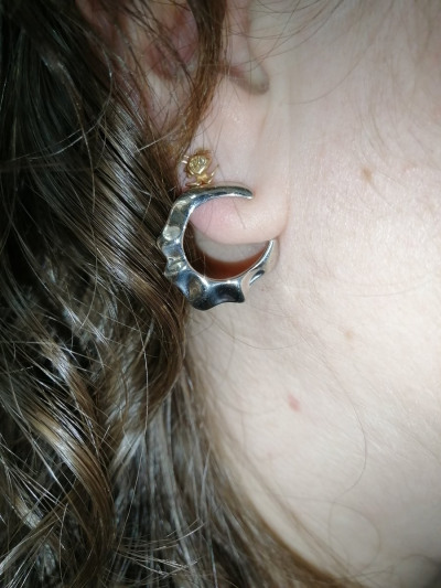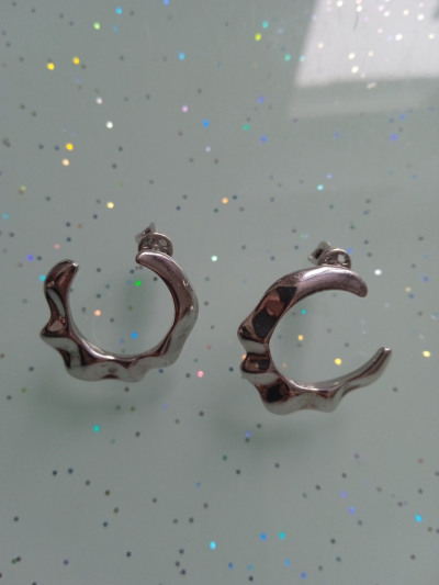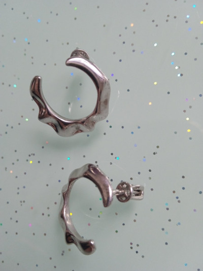 Серьги небольшого размера. Вроде строгие, но очень стильные. Необычная форма в данной модели очень выгодна - подойдёт под любой прокол, под любую мочку.