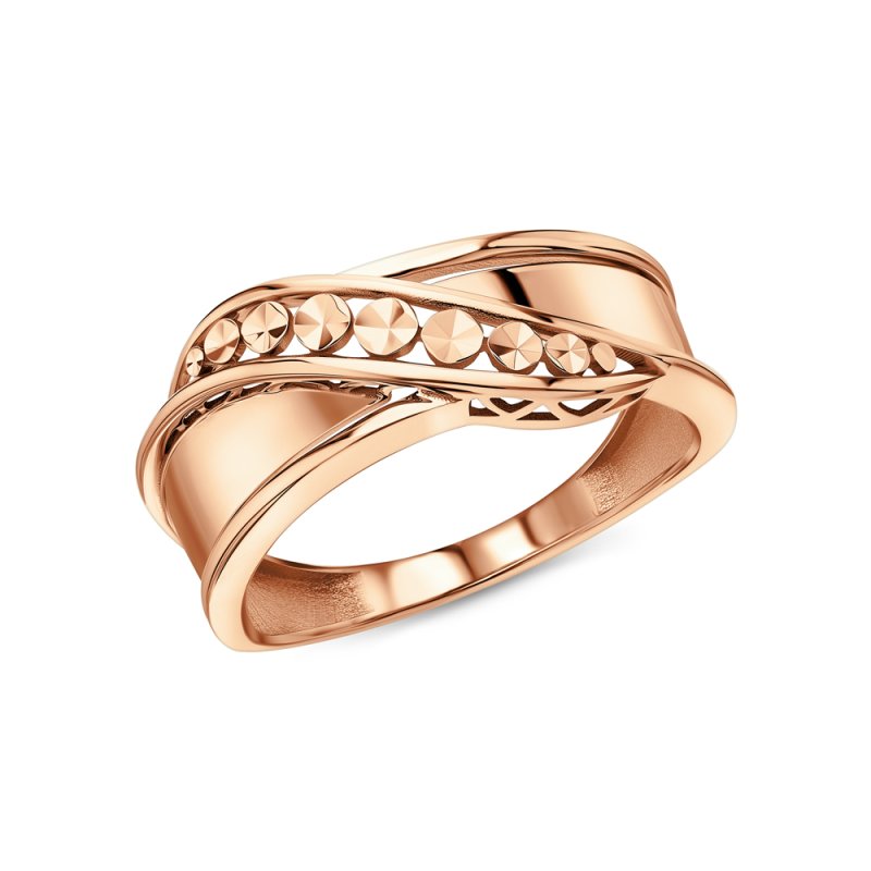 Кольцо с 1 бриллиантом природным, 0.008 карат, огранка круг 17 граней, цвет 2, чистота 2, тип огранки А; 59 бриллиантами природными, 0.277 карат, огранка круг 17 граней, цвет 2, чистота 2, тип огранки А; Розовое и белое золото 585 пробы.