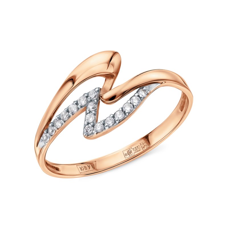Кольцо с 10 бриллиантами природными, 0.08 карат, огранка круг 57 граней, цвет 3, чистота 6, тип огранки А; 13 бриллиантами природными, 0.04 карат, огранка круг 57 граней, цвет 3, чистота 6, тип огранки А; Желтое золото 585 пробы.