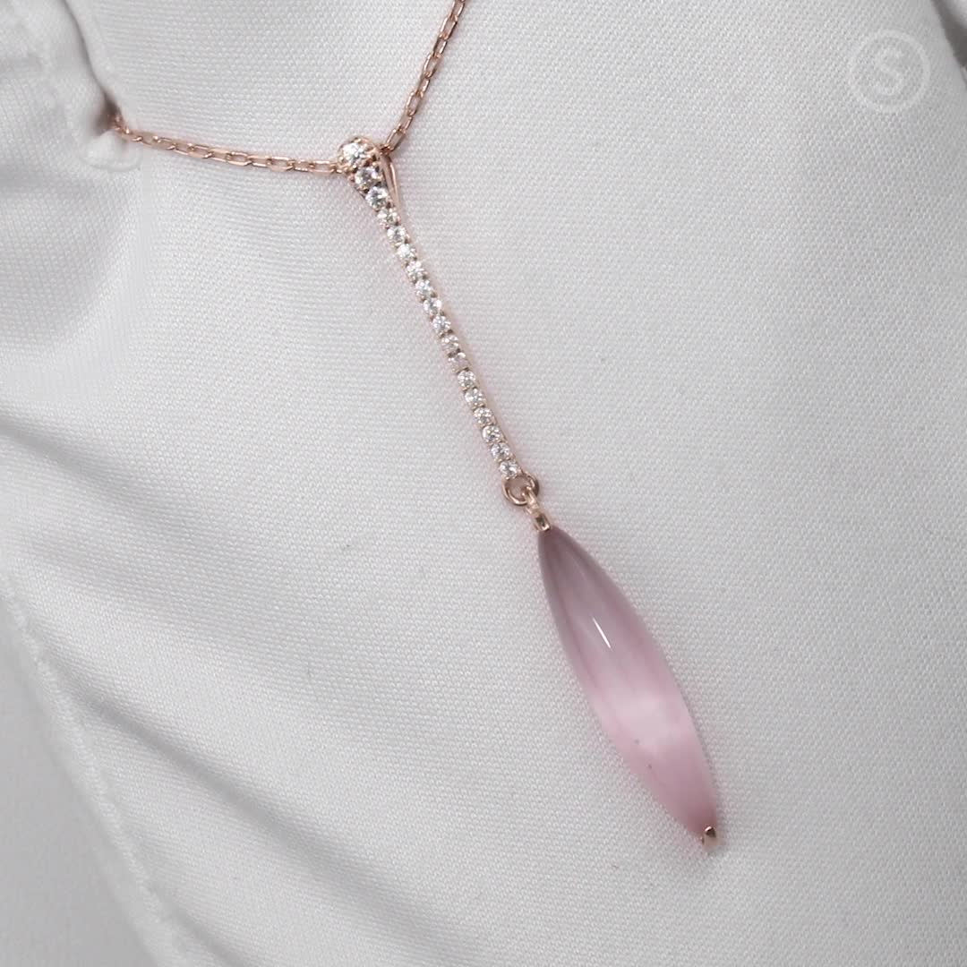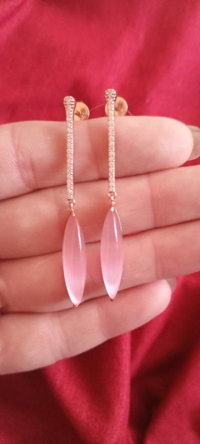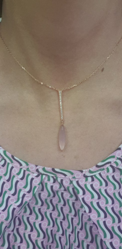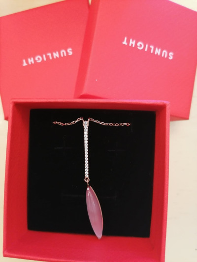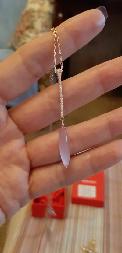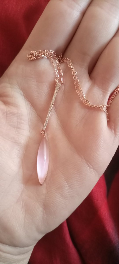 Очень красивая подвеска. На деле оказалась намного красивее, чем на фотографиях сайта. Фианиты очень сочетаются с этим розовым камнем.