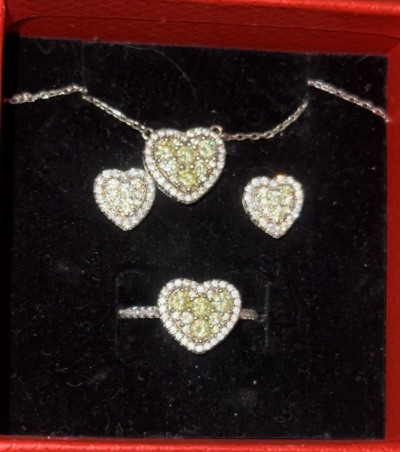 Очень красивый комплект получился из сердечек. Внутри фианиты с белыми камушками и акцентными желтыми.