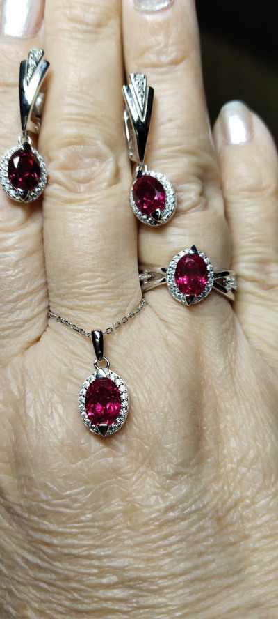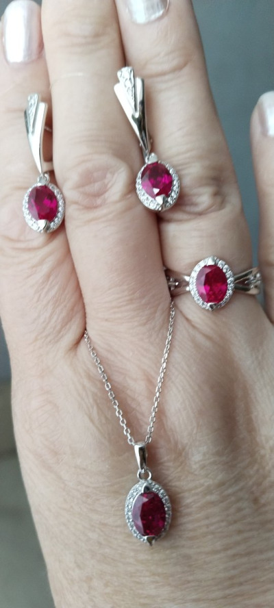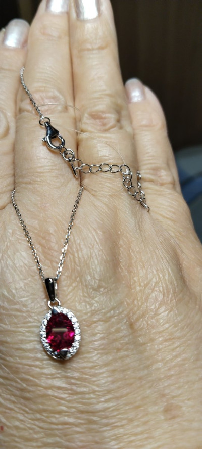 Серебряное шейное украшение с фианитами и рубином синтетическим