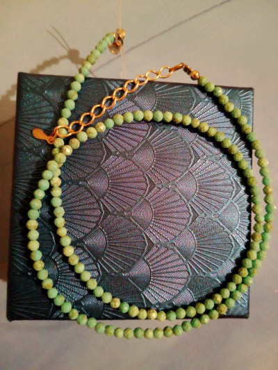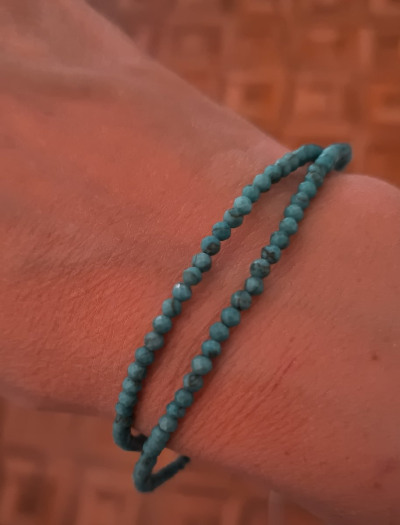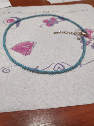 Бирюза граненая, мелкая 3 мм, можно носить на шее или на руке, только замок начал темнеть
