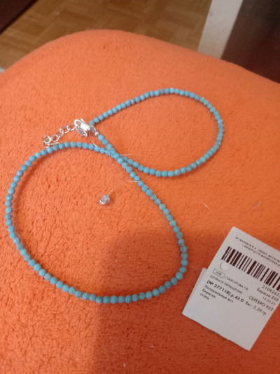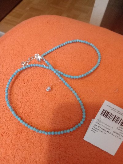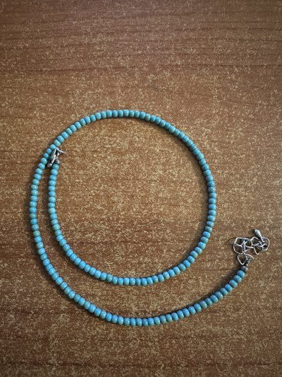 Красивая голубая натуральная бирюза! С удлинителем, хороший вес при длине цепочки 42 вес 5,72 г, замочек и удлинитель сделан из стали. Очень красивые элегантные бусы!