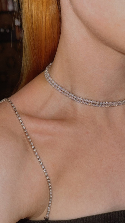Серебряное шейное украшение с фианитами