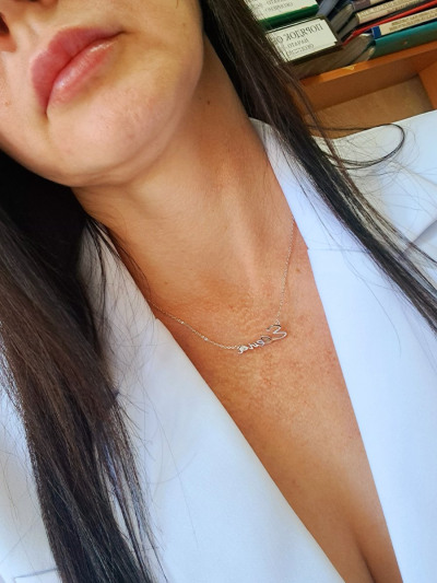 Миниатюрное колье, выглядит элегантно, не броско. Цепочка тоненькая.