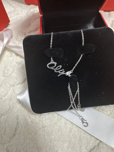 Серебряное шейное украшение с именем Ольга!!!Очень стильно смотрится!!!Имена есть разные.