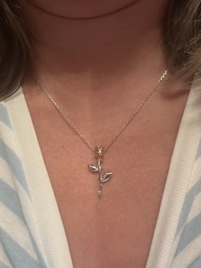Полновесная Роза. Тяжеленькая но не напрягает вес. Очень красивая. Чуть чуть бы ушко больше и можно было со своей цепочкой носить.