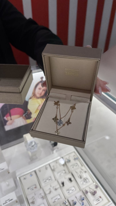 В редких случаях характеристики украшения или упаковка могут иметь отличия от представленных на фото или в описании.Шейное укр., вставка: фианитом бесцветным;