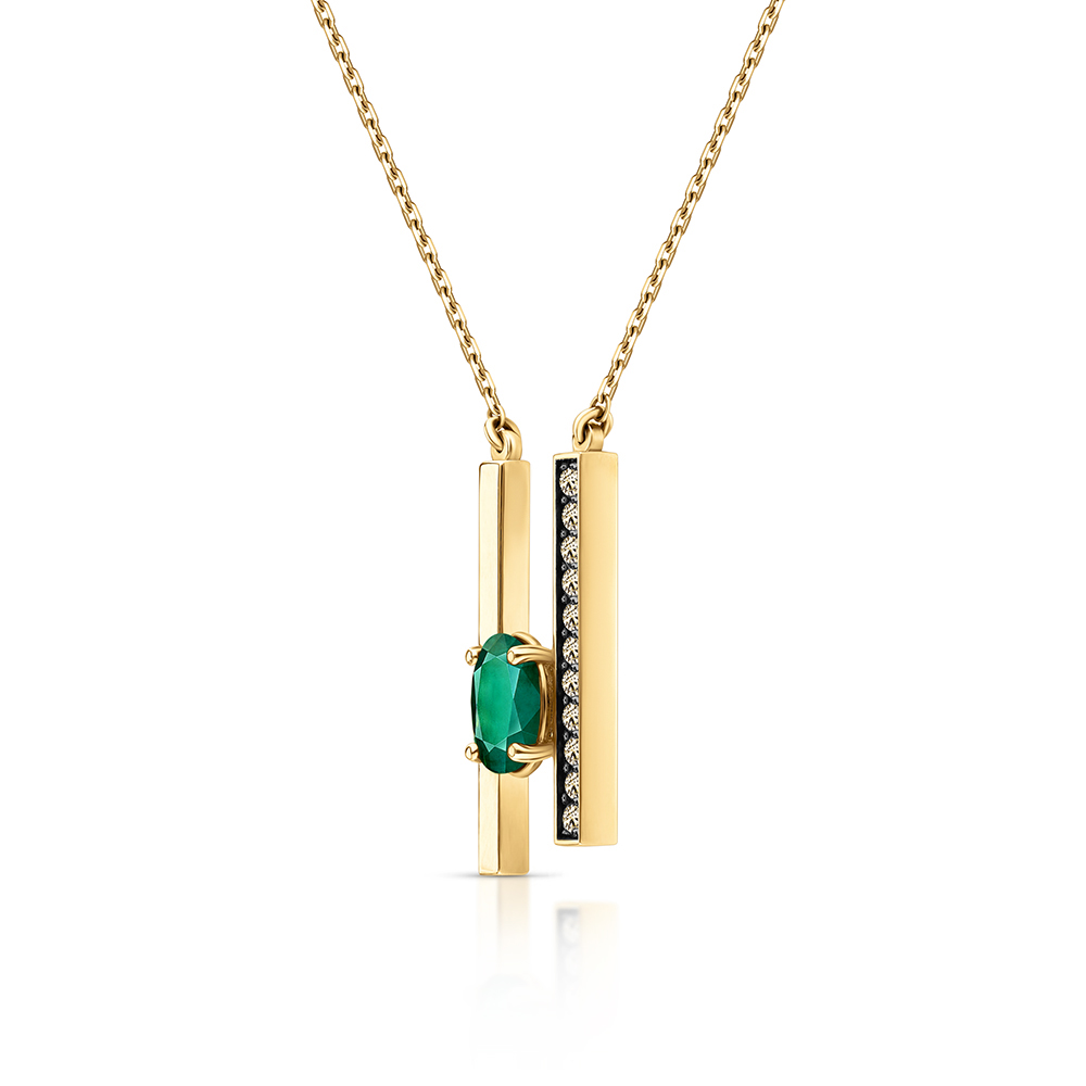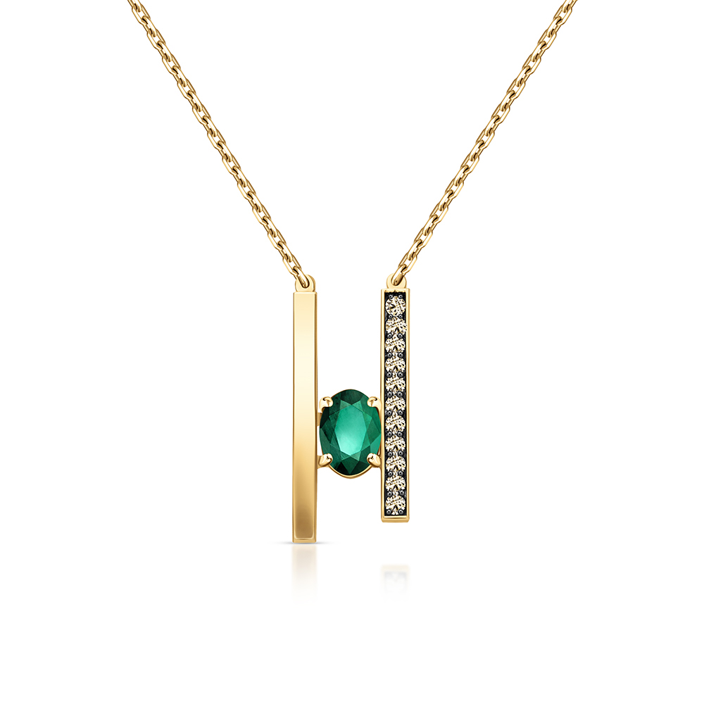 Золотое шейное украшение с бриллиантами природными и изумрудами природными