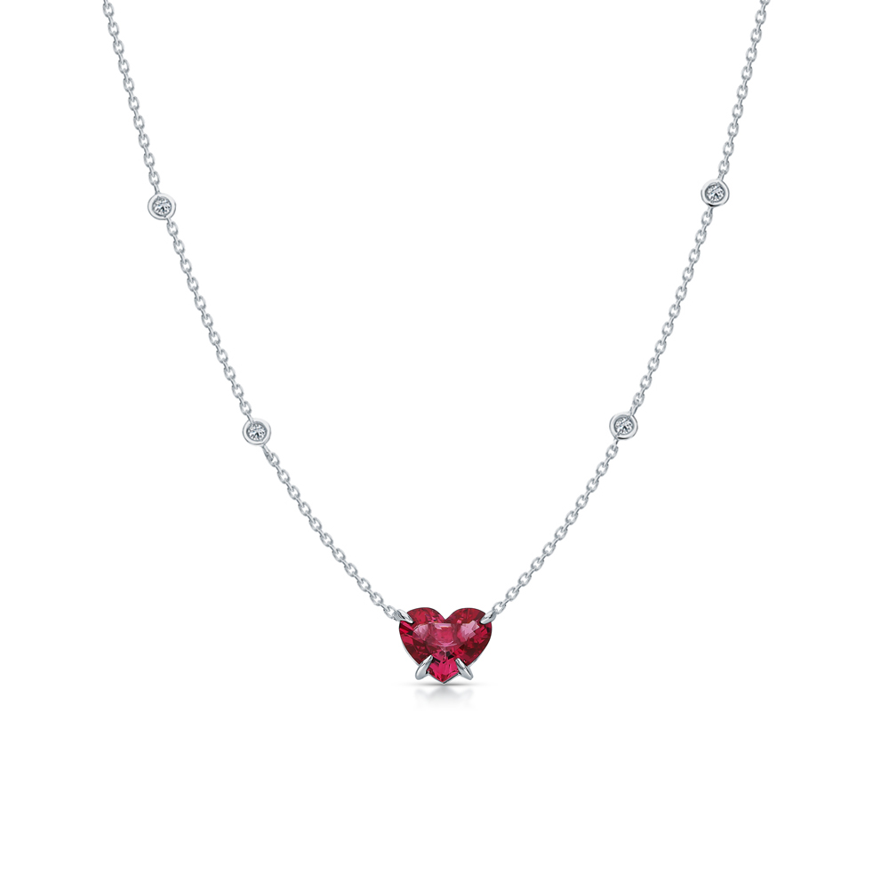 Золотое шейное украшение с бриллиантами природными и шпинелью розовой природной