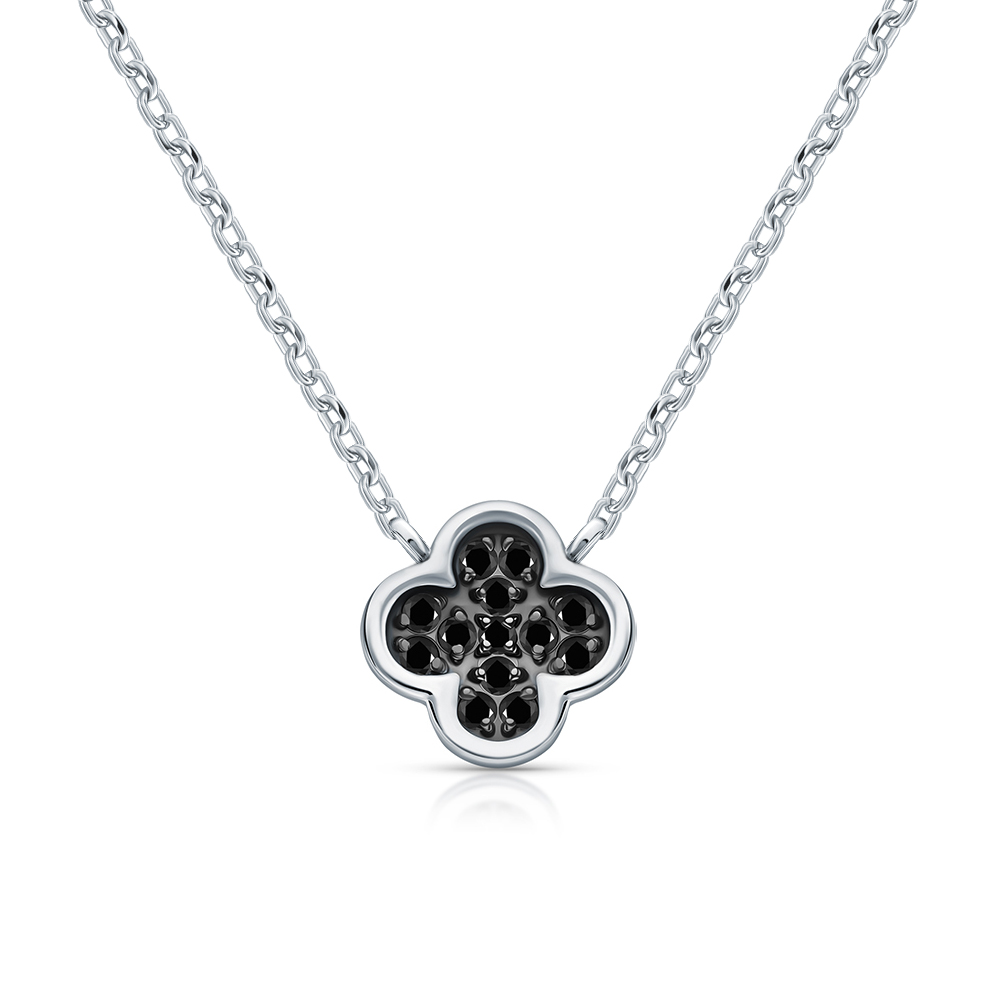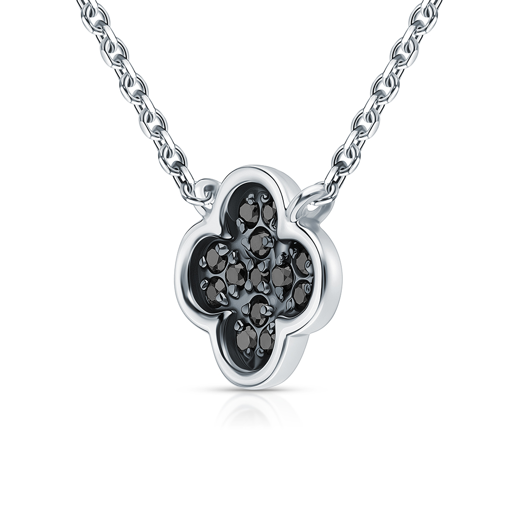 Шейное укр. с 13 бриллиантами черными природными облагороженными, 0.06 карат, огранка круг 57 граней, цвет 7, чистота 6, тип огранки А;