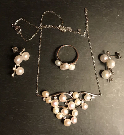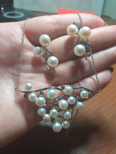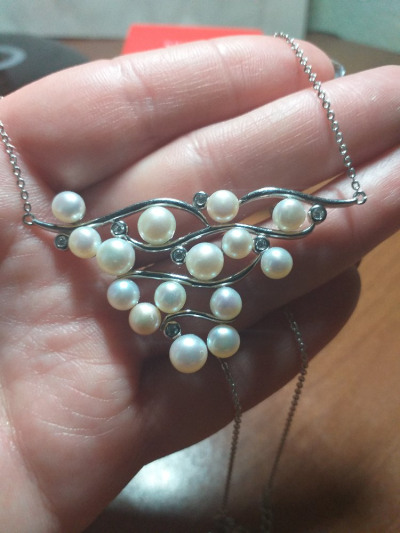 Крупное красивое колье! Жемчуг натуральный. Тонкая работа. Фианиты блестят. Ношу с удовольствием. Покупала к серьгам.