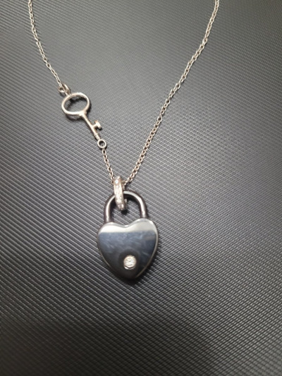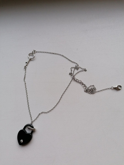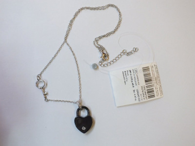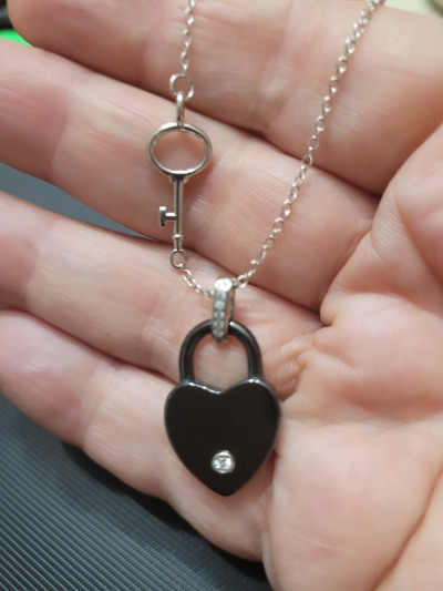 Керамический замочек в виде сердца с фианитом на цепочке. И очень интересное решение- ключик вплетен в цепочку. Не смогла удержаться и не купить такую прелесть.
