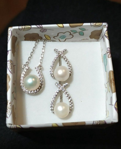 Серебряное шейное украшение с жемчугом и фианитами