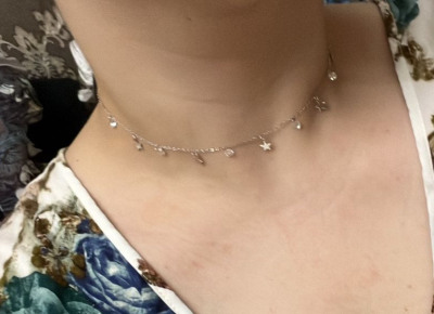 Колье очень красивое! Блестит, светится. Дочка носит практически год. Не потемнело. Рекомендую!