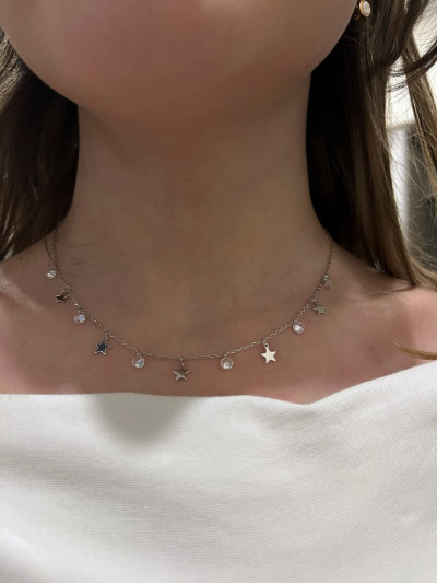 Серебряное шейное украшение с фианитами
