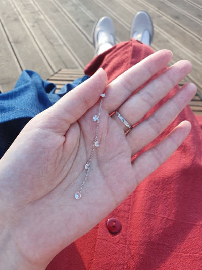 Очень милое нежное тонкое колье, у меня уже целая коллекция в подобном стиле собралась. Не снимаю его