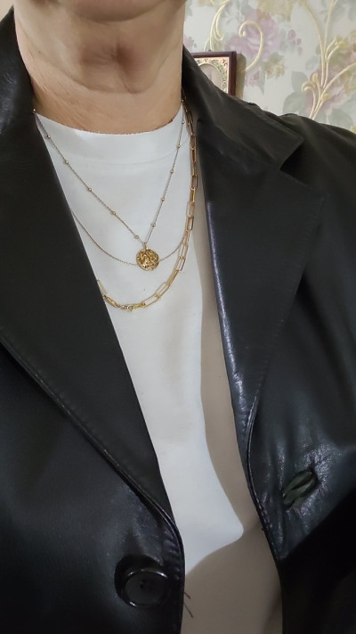 Отлично в комплекте с подвесами из жемчуга на других цепях, создает многослойность и не перегружает