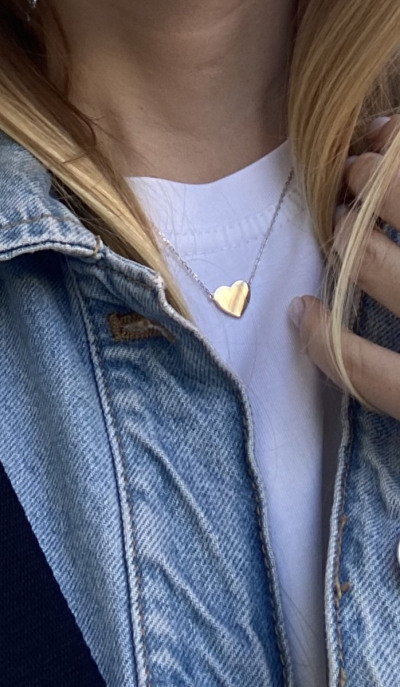 Очень люблю эту цепочку. Ношу часто, могу сочетать с другими. Не потемнела, все целое. Только само сердечко немного затерлось, поверхность перестала быть настолько глянцевой как в начале, заметны царапинки.