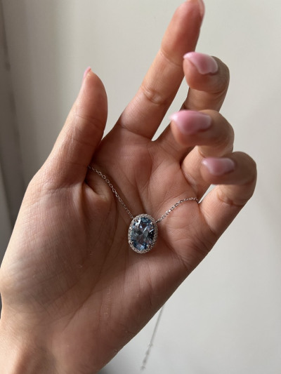 Изящная красивая подвеска с крупным камнем в голубом цвете