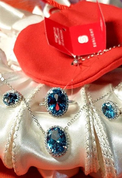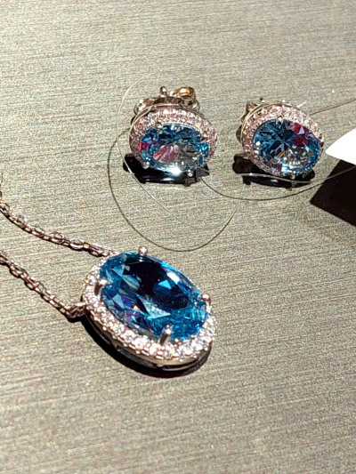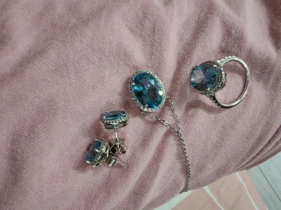 Приобретен комплект, выполнен отлично, насыщенный небесно- голубой цвет фианитов, красиво,ярко,элегантно,шикарный блеск камней, восторг, на солнце летом будет бесподобно по-королевски.