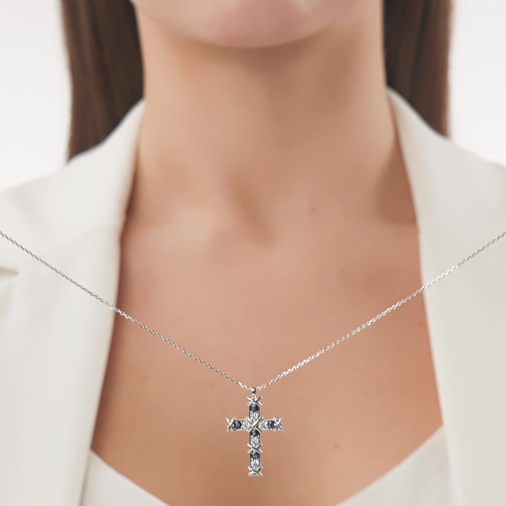 Очень милый крестик. Не маленький. Сапфир натуральный