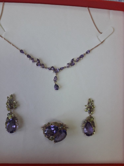 Замечательное аметистовые колье.Длинна удобная.Застежка крепкая .Цена порадовала.Смотрится отлично.Цвет камней насыщенный.