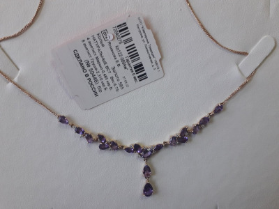 В редких случаях характеристики украшения или упаковка могут иметь отличия от представленных на фото или в описании.Колье с 14 аметистами, 3.605 карат;4 аметистами, 0.54 карат; фианит;
