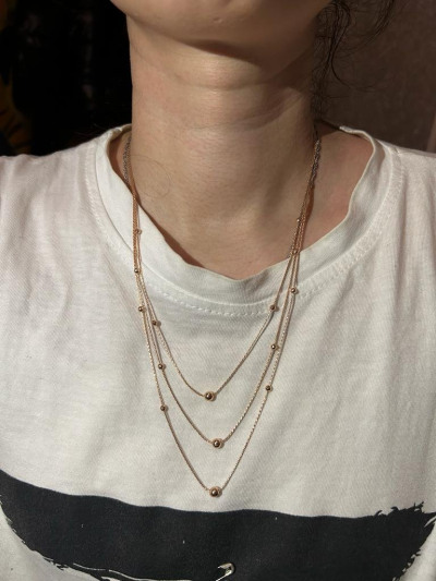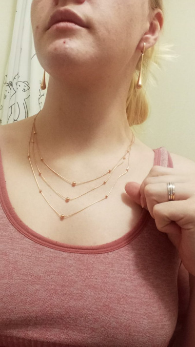 Колье сразу понравилось мне эдаким дизайном в три уровня. Чистое золото без вставок, все как мне нра 😍