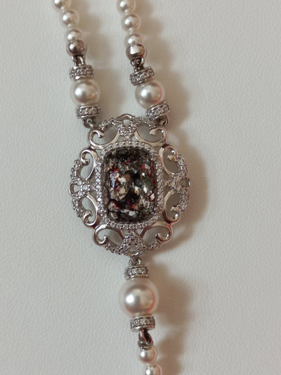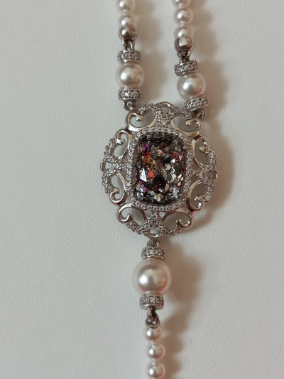 Колье с жемчугом, фианитами, кристаллами Swarovski и серебряной вставкой