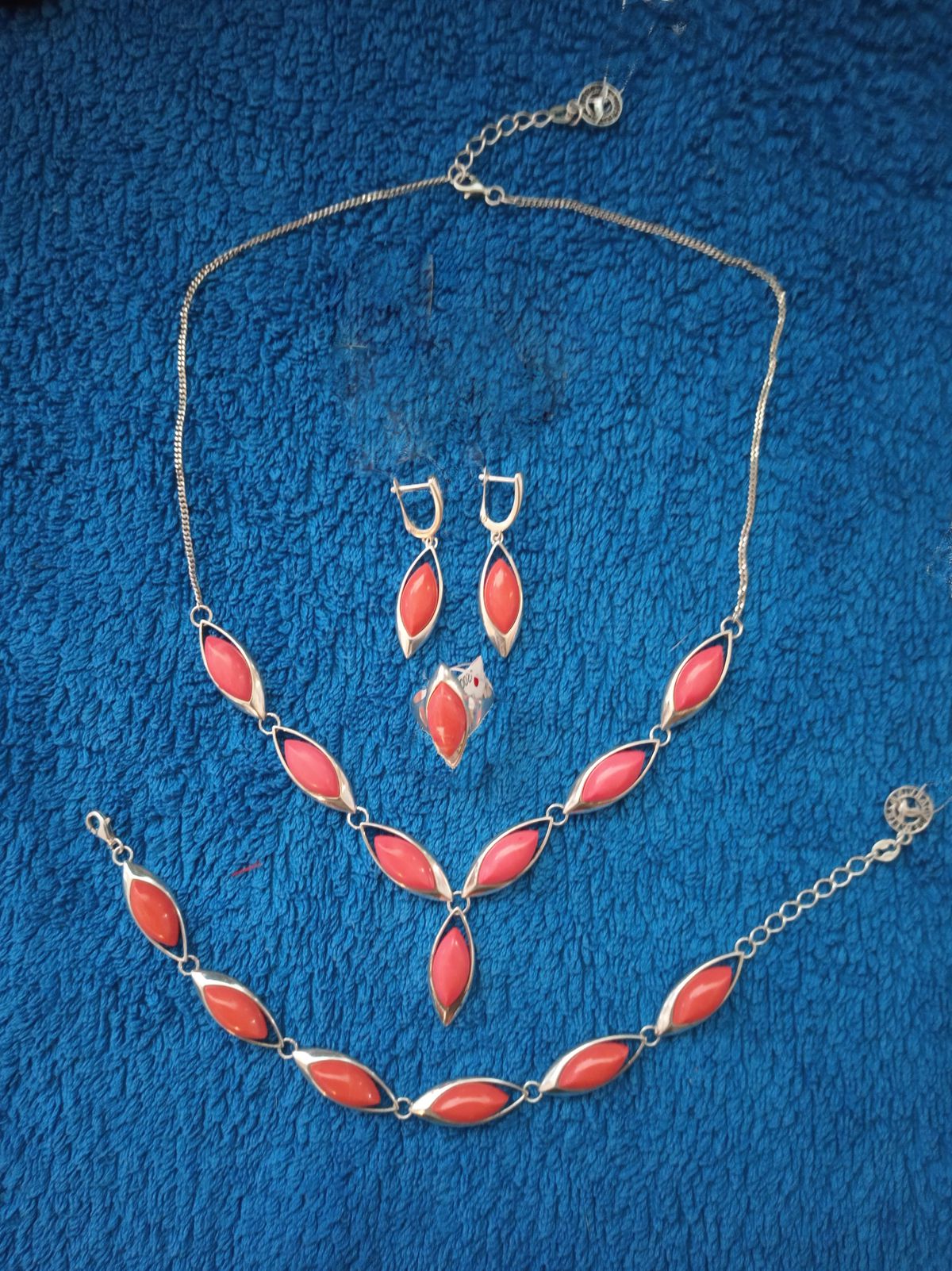 Положил глаз на этот комплект в ювелирной сети "Алмаз". Но кто-то разбил его купив серьги и кольцо. Искал почти год. Нашёл в Санлайт. Правда пришлось за колье скататься из Иркутска в Москву,а за браслетом серьгами и перстнем- в Великий Новгород; но радость в глазах любимой женщины ТОГО СТОИЛА. Он ей очень к лицу! Шикарная возможность для комбинирования сочетаний предметов данного гарнитура!