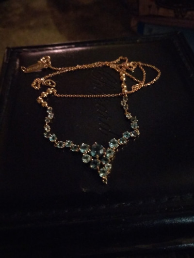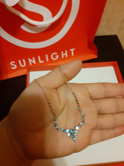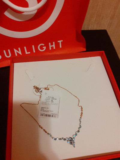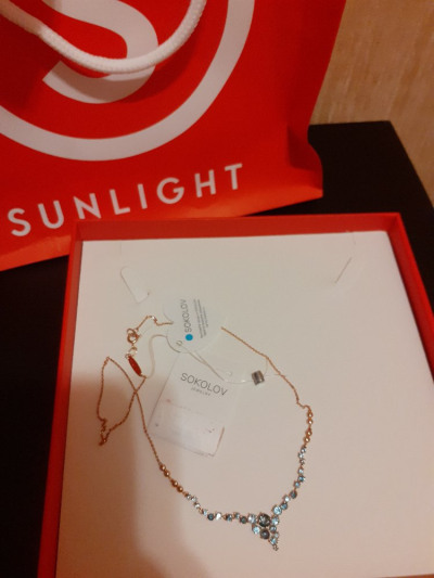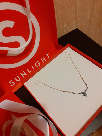 Просматривая сайт санлайта увидела это потрясающе золотое колье с топазами. Прочитала отзывы об этом украшении и не могла отказаться от покупки. Оно потрясающее. Длина колье 45мм. Купила по хорошей цене. Вежливое обслуживание. Всё красиво упаковано. К покупке рекомендуется