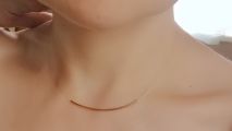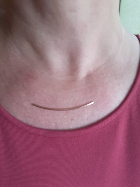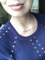 Приобрела колье в магазине ,сначала хотела на 40 см купить ,но померив определилась на 45см . Элегантное ,невесомое ,стильное украшение . Минимализм ,ничего лишнего . Иногда,ношу с колье из этой же серии ,круглый глазок с фианитом на 38 см . Советую всем это колье ,тем более такая скидка .
