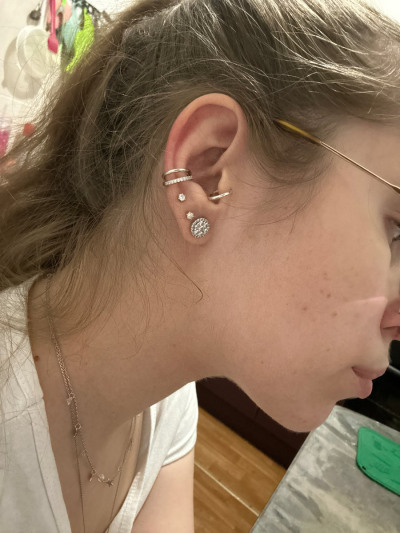 Отличная серьга, тяжело одевать, если ношу весь день, к вечеру болит ухо.