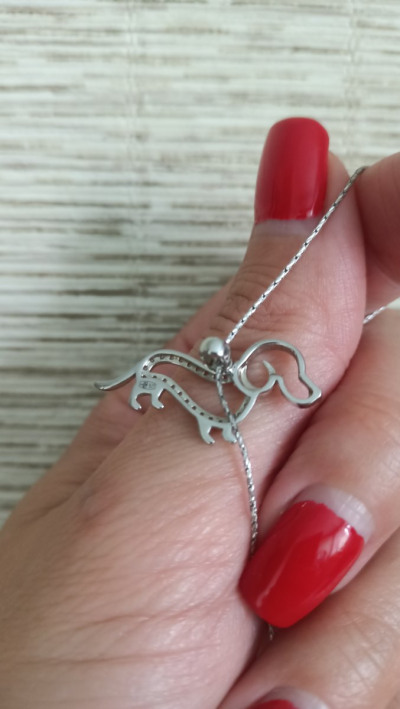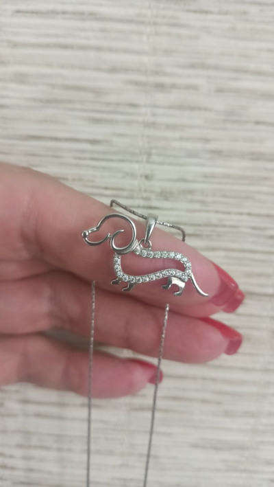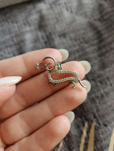Милейший серебряный кулон в форме таксы, очень нравится)