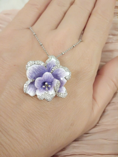 Очень красивая подвеска в виде изысканного сиреневого цветка. Исполнена искусно. Ношу с кольцом с чароитом. Великолепно смотрится!